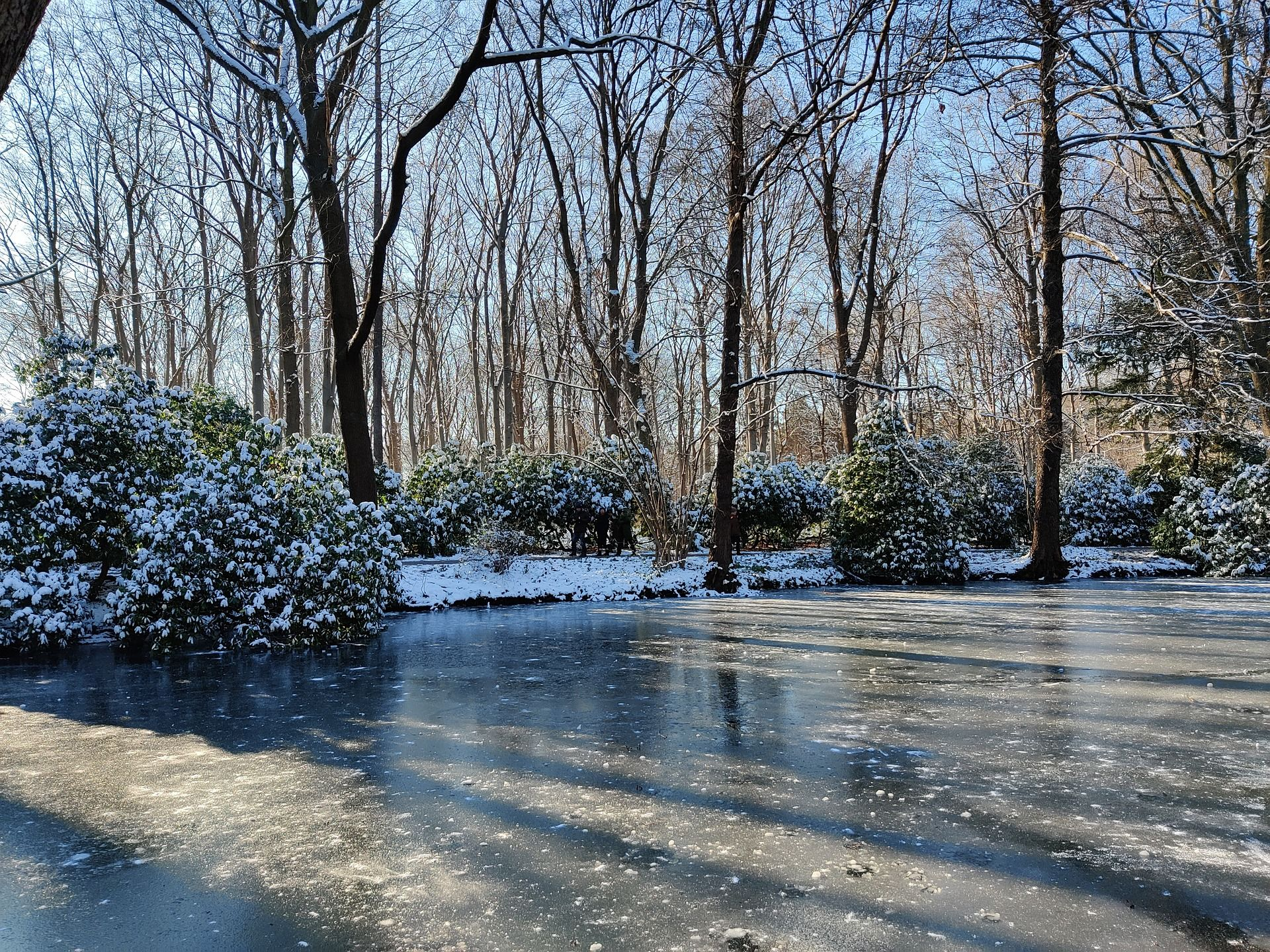 1. In cold, frosty weather, ice on a lake or on running water, such as a stream, might look thick and make you think it is safe to stand on or play on. It is unsafe.